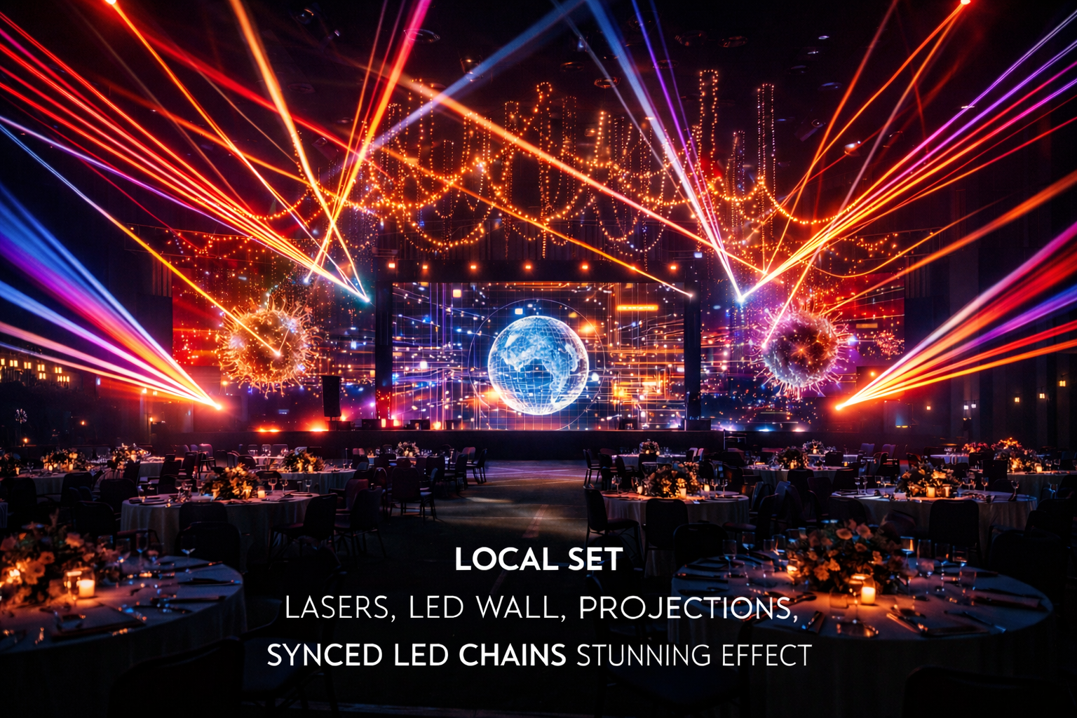 Con i proiettori e le luci innovative di Bee E., trasformerai il tuo evento in un'esperienza visiva mozzafiato e coinvolgente.